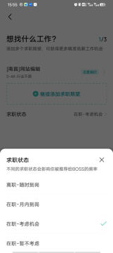 3、选择 “在职 - 暂不考虑” 即可,当然你也可以直接隐藏自己的简历。