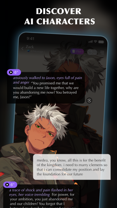 多元角色与场景库:涵盖动漫男友、神秘病娇同学、史诗英雄等数百种预设AI角色,覆盖奇幻冒险、校园drama、科幻任务等丰富场景,为用户提供即开即玩的角色扮演素材。每个角色均有人设完整的背景故事与互动逻辑,能快速代入对话情境。
