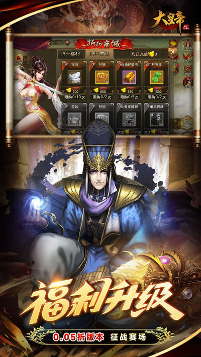 大皇帝0.05折争霸天下是一款专为策略游戏爱好者打造的三国题材SLG手游,以东汉末年乱世为背景,玩家将化身一方诸侯,从击杀叛贼、临危受命到问鼎江山,亲历一条波澜壮阔的帝王之路。游戏内128座城池等你征服,开疆拓土收复领地,招募英雄、积攒银两、夺取宝物,逐步崛起为全服最强帝王!更以0.05折超低充值比例颠覆传统付费模式,首充、续充全线折扣,648元礼包仅需3.28元,轻松实现“白嫖”称帝的梦想。