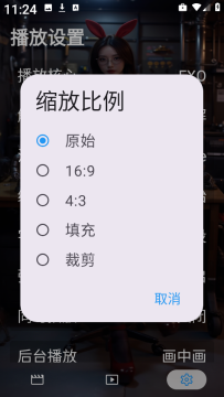 4、在播放设置界面,还可以自定义调整画面缩放比例大小。