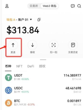 4、打开Web3钱包首页,点击发送,选择您想要充值的币种。