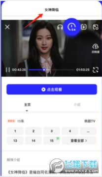 3、点击女神降临漫画播放页,展示播放进度、集数等,介绍其改编自同名漫画及剧情概要。