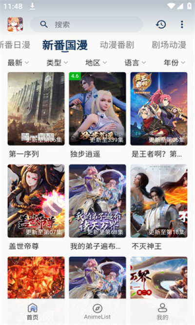 2、进入首页,可以看到新番日漫、新番国漫、动漫番剧、剧场动漫四大板块。