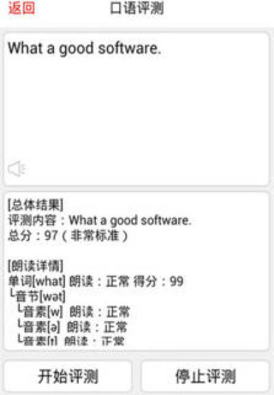 2. 口语测评:结合强大的英语口语测评及普通话测评技术,妈妈再也不担心我口语不好啦,来看看小秘书给你的口语打多少分吧。