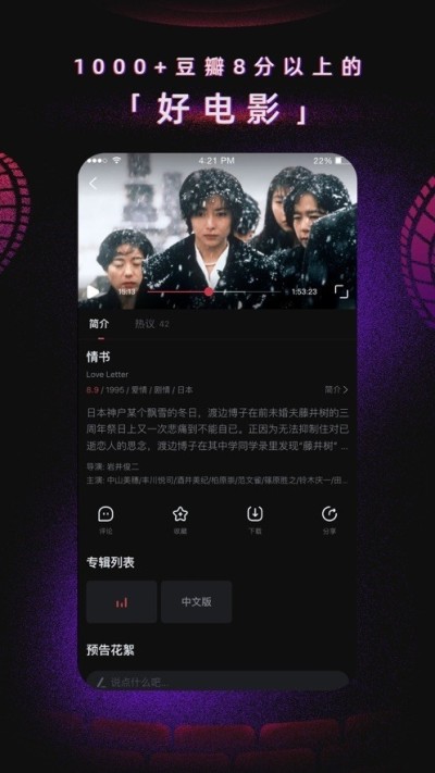 弹幕互动:实时发送与观看弹幕,与其他用户分享观点,增强观影乐趣。