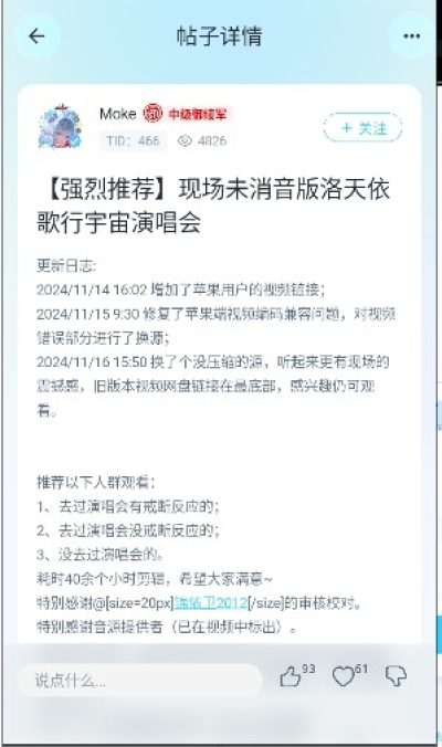 一个专为洛天依打造的VOCALOID 社区,可与众多锦依卫一起讨论歌曲、视频、周边等,同时有大量洛天依相关的原创、二创作品。