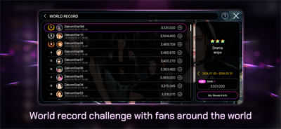 - 请参加每周联赛 / SUPERSTAR 联赛,享受与全球 K-POP 粉丝用户的排名赛!