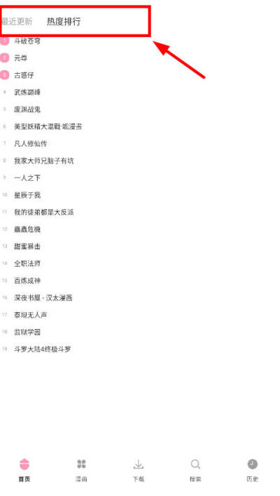 2、点击上方的热度排行可以查看排行榜;