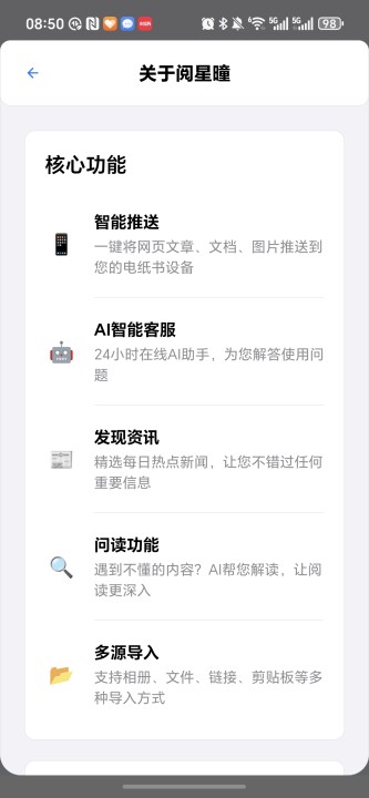 阅星曈app是一款墨水屏阅读器阅星曈官方打造的安卓软件,在这里你可以快速连接你的实体设备,支持手机快速传书到电子书设备上,界面简洁直观,传输速度非常快,对软件感兴趣的话不妨点击下载试试!