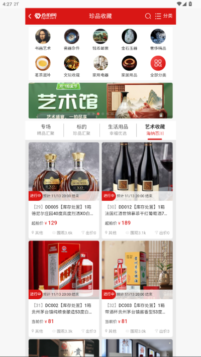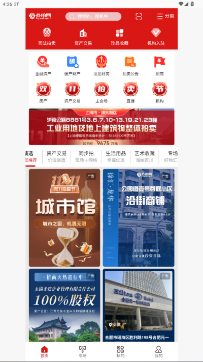 2、海量拍品全覆盖:涵盖不动产(房产)、交通工具(车辆)、财产权益(股权)、艺术收藏、奢侈品等多类型标的,九大拍卖分类覆盖生活、投资、收藏等多元场景,轻松找到心仪拍品;