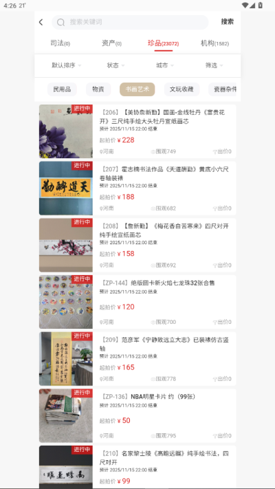 2、精细化搜索筛选:支持按拍品类型、拍卖机构、开拍时间、价格区间等多维度搜索筛选,搭配拍品照片、所属公司、出价记录、竞买公告等详细信息展示,帮助用户快速定位目标标的,提升选品效率;