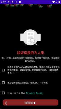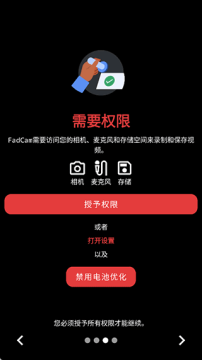 1、下载安装Fadcam相机,进入软件,点击同意3项权限。