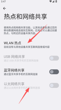 3、需要开启热点和共享网络完成连接操作。