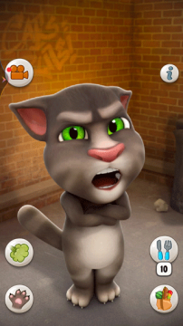 9、按下电话按钮,让汤姆与原版的会说话的汤姆进行游戏,他会用滑稽的声音复述他自己的话。
