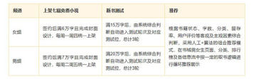 女频:主收总裁、宅斗、种田、年代、玄幻、青春校园等传统题材,以及职业、快穿、二次元、脑洞、网游、美食、末世、悬疑等特色作品。