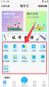 喵学王app官方下载最新版本是一款集学习工具与社区互动于一体的智能学习辅助软件,专为学生及自学者设计。通过整合文本打印、拍照搜题、错题整理、作文素材库等核心功能,帮助用户实现“拍照-打印-学习”的一站式知识管理流程。软件以“高效、精准、便捷”为核心理念,支持多场景学习需求,尤其适合需要整理错题、快速获取解析、积累写作素材的用户群体。