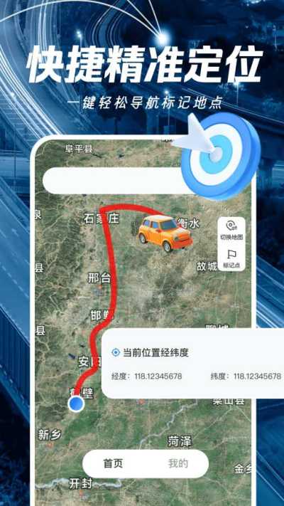 精准卫星地图app是一款安卓地图浏览软件,用户可以自定义选择不同的地图类型进行搜索,一键智能标记坐标,根据记录的坐标搜索地点,一键轻松导航出行,对软件感兴趣的话不妨点击下载试试!