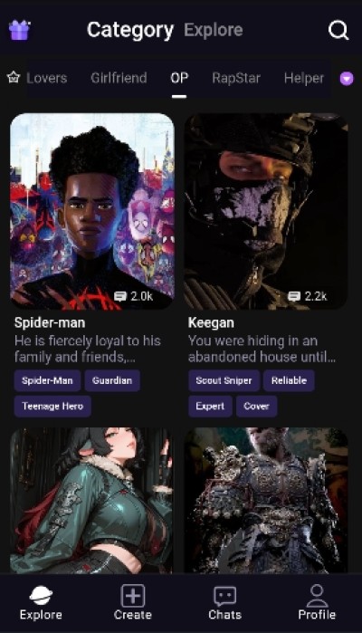 1、虚拟角色互动:用户可以深度定制AI伴侣的外形、声线及人格特质,通过动态叙事建立情感联结。此外,还能够收集限量角色卡片形成独特的社交资产。