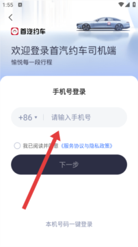3、注册完成后在手机号的登录界面,需要点击请输入手机号输入框,填写手机号码,为登录做准备。