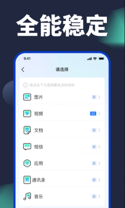 覆盖联系人、短信、照片、音乐、视频、应用等用户核心数据,“你在意的都能迁”,无需担心重要数据遗漏;