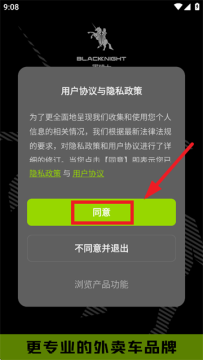 下载安装并打开黑骑士app,先同意用户协议与隐私政策