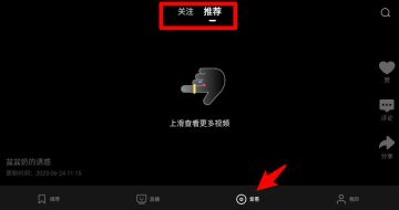 3、“爱看”频道提供个性化推荐,支持上下滑动查看更多短视频内容,并可在上方选择“关注”或“推荐”标签。