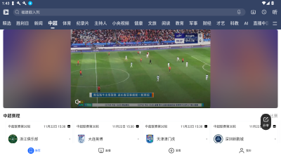 2、切换至“直播”频道,可观看CCTV各频道及地方台实时直播,支持分类筛选和节目的快捷点播。