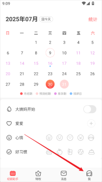 📅 经期管理 一键记录每次月经开始/结束时间,支持查看完整历史周期图表。