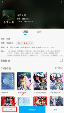 3、进入小说主页,点击左下角的【加入书架】,也可以直接阅读;