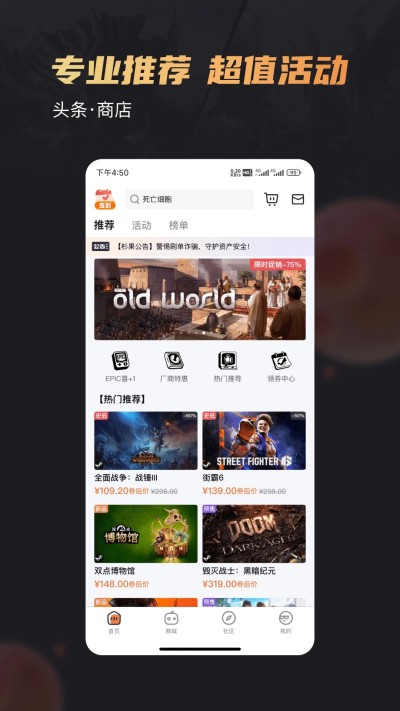 不定期促销福利,折扣诱人:平台全年都会举办丰富多样的优惠促销活动,在假期节日、开学返校等特殊时期以及日常都会推出特惠。新人福利、满减优惠、积分兑换、惊喜抽奖等福利活动期期够劲,让玩家能够以实惠的价格购买到心仪的游戏。