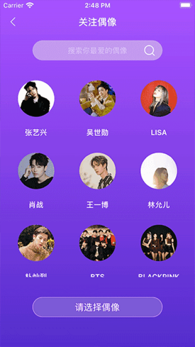 2、偶像动态实时掌握:支持关注喜爱的偶像,偶像发布的动态可第一时间查看,不错过重要信息;
