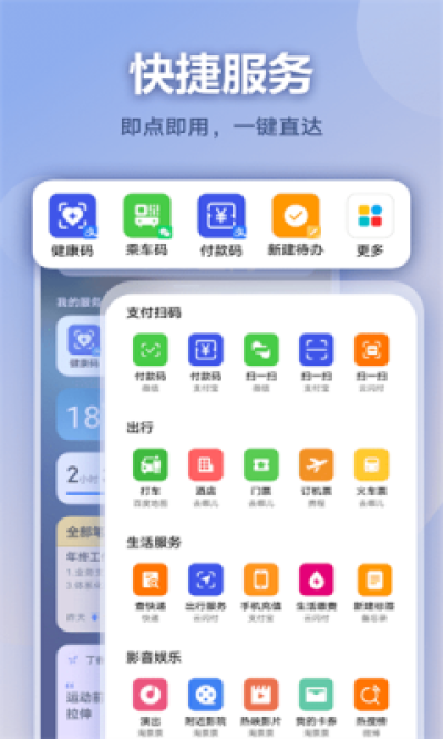 超多的快捷服务可以在桌面的负一屏使用,让生活更便捷。