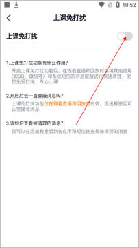 4、进入上课免打扰界面,点击【上课免打扰】右侧按钮开启。