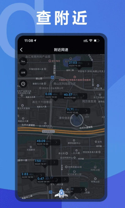 5、附近网速:地图定位,显示周边其他用户网速快慢;