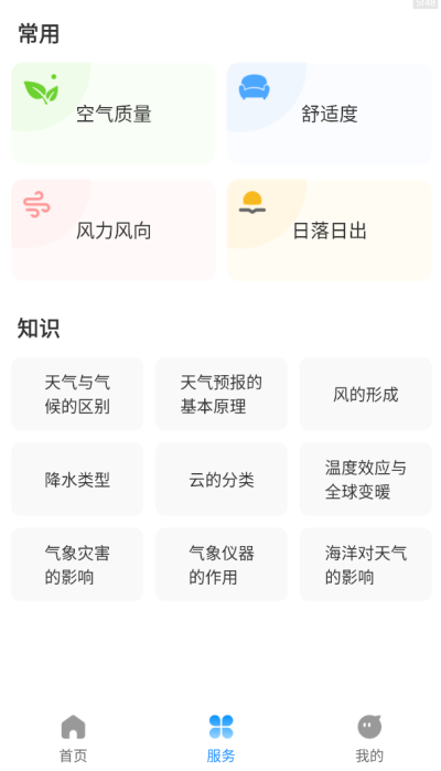 5、提供了空气质量服务,自动更新质量指数和各污染物数据,并显示温馨提示;