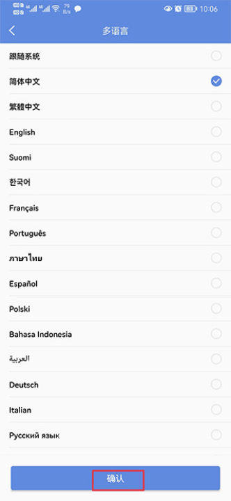 2、选择简体中文后,点击确认就设置成功了。
