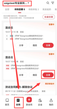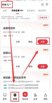 切换到企业空间下,找到待签署合同,打开签署页面。