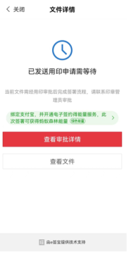 如果没有用印权限,会提交用印申请,审批人审核通过后即可签署完成。