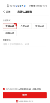 印章选择后,点击【提交签署】,完成意愿认证即可完成签署。