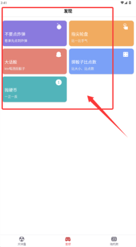 3、探索更多趣味玩法,可前往发现页体验炸弹躲避或掷骰子等游戏项目。