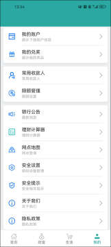 在我的列表功能帮助中还可以设定常用的收款人信息,还有附近网点查询功能在线服务帮助。
