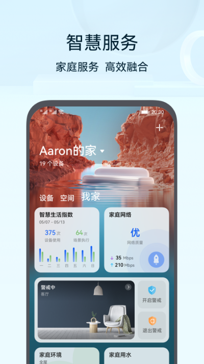 智能家居安卓版是一款手机智能设备app,该软件是荣耀官方连接应用,能一键发现所有设备,并进行多样化自定义配置,将家庭家居智能化轻松实现。app还是重要的交互系统,用户能在手机中快速查看到设备状态,检测环境信息,可以说是智能家居设备必备应用。