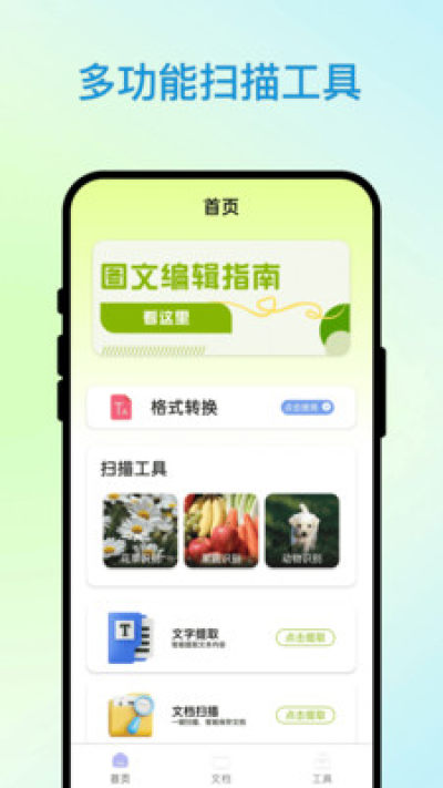 2、支持图片、文字、证件和图纸等多种扫描类型。