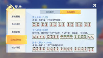 由血战到底进化而来的血流成河玩法,是颇受玩家们喜爱的对局模式。在原本的“血战到底”玩法中,一家胡牌并不会结束牌局,而是由未胡牌的玩家继续打,直到有3家都胡牌或者余下的玩家流局,才会视为结束。这样的对局方式既提高了对局的博弈性,又增加了趣味性。血流成河玩法在这一基础上将玩法进行了更丰富的延伸,只有所有玩家摸完所有牌,才算是终局。更加刺激的规则让牌局生出更多变化,在只有跳、饼、万三种牌色的情况下,且只有缺门(只有两种花色以下的牌)可胡运气好的玩家,将可以大牌不断,一次性赚的盆满钵满。一炮多响以及刮风下雨等多种趣味设定,让牌局充满了变化,玩家们在精确计算的同时,想要获得更好的成绩,或许还需要一点点的运气。