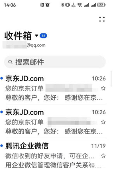 5.由于非Exchange邮箱无法设置同步周期为【自动推送】,建议进入电子邮件后下拉尝试,查看是否有收到新的邮件。