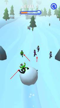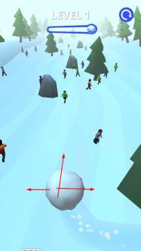2、随着雪球滚动,不断卷入更多人物,同时留意场景中的石块等障碍物,调整雪球移动方向,避免阻碍。