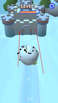3、当雪球增大到合适体积后,朝着城堡方向推进,最终让雪球冲入城堡大门,完成关卡挑战。