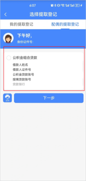 4、提取登记(配偶是贷款人选择配偶提取登记)