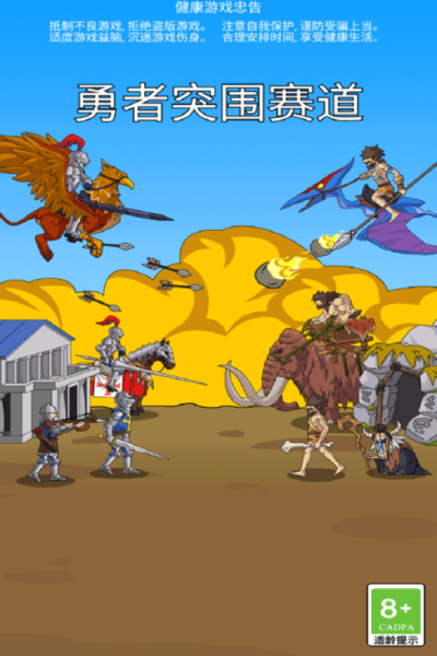 《勇者突围赛道》是一款融合时代穿越与策略对战的趣味冒险游戏。你将在游戏中开启一场跨越时空的激战:一边是身披重甲、驾驭狮鹫的中世纪骑士,另一边是骑乘猛犸象、驾控翼龙的原始部落勇者,双方在 “勇者突围赛道” 上展开激烈碰撞。