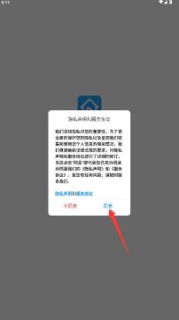 1、打开应用后仔细阅读服务协议和隐私政策,确认后点击我同意按钮进入应用。